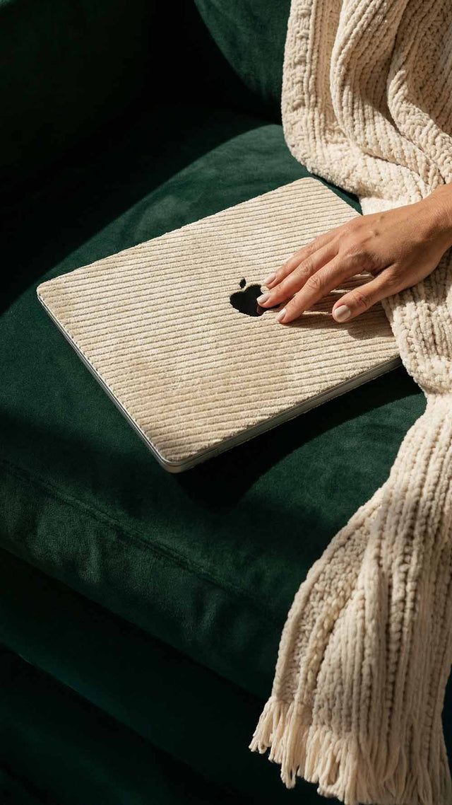 Vergiss Plastikhüllen – dein Mac verdient Stoff, keinen Kunststoff.